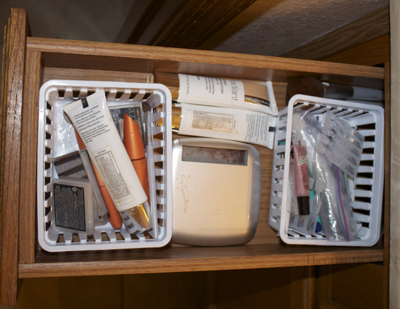 Here is a look in the drawers of our bathroom. These have always been like this, I didn't even have to organize them for you! Guess I am not as bad as I originally thought!