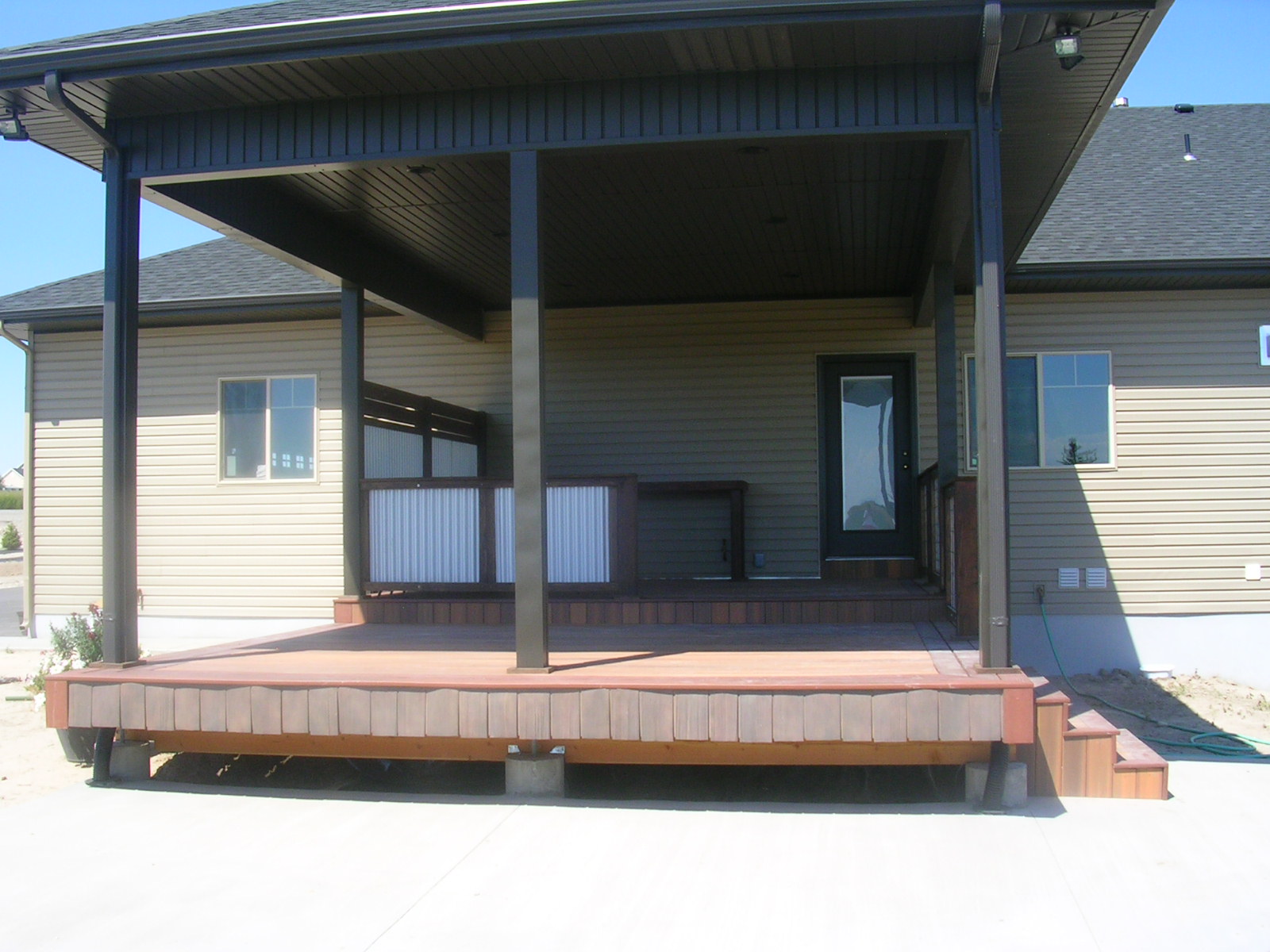 My husband has just about finished the deck. We need to put the skirting on the bottom but here's how amazing it looks so far. The floor is Fiberon a composite decking. We looked forever at products and liked that this started out with a 10 year warranty but changed to a 25 year stain and fade warranty. It basically is Trex wrapped in plastic. I was worried it would look fake but it doesn't at all. Trex has had alot of problems and this Fiberon won't stain and peel like our other stairs and decks did. The edge color is Rosewood and the inside boards are IPE. Want more information click HERE for their website.